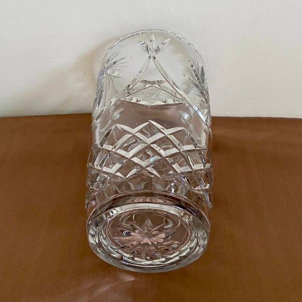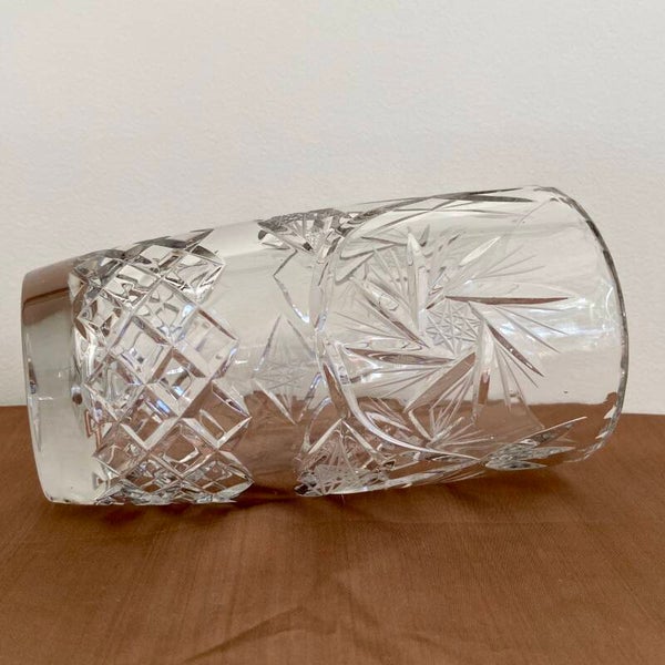 Heavy lead crystal vase. No chips but normal wear as expected.