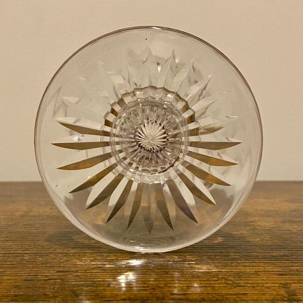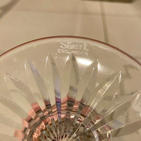 A beautiful Stuart, England crystal vase. There are no chips on the but it does have normal wear as would be expected.