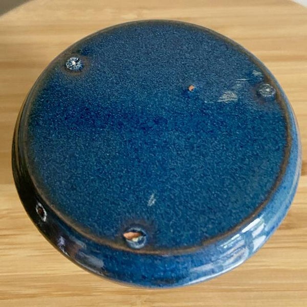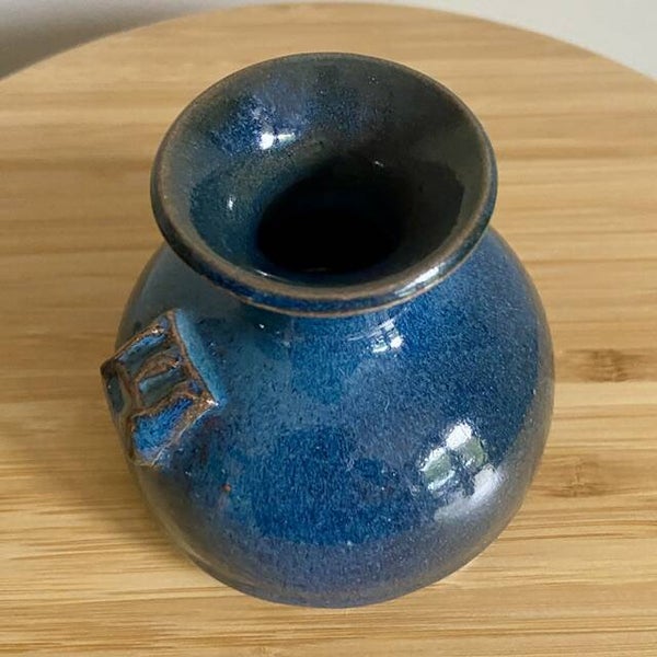 4.5cm across rim, 26cm around widest part, 7.5cm tall, 7.5cm across base