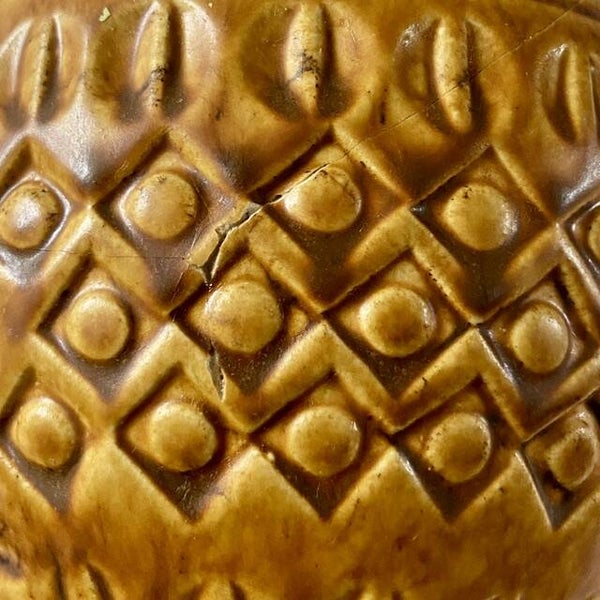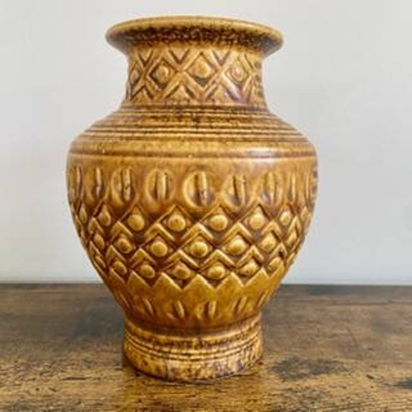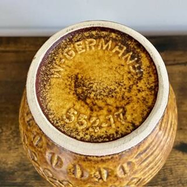9cm across rim, 42.5 around widest part, 7.5cm across base, 17.5cm tall