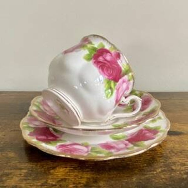 Old English rose tea set trio round plate from Royal Albert bone china made in England,. Gold rim
