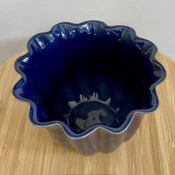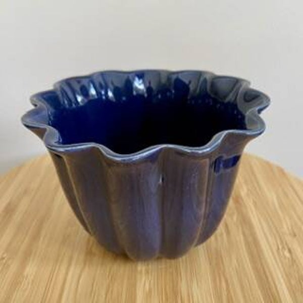 12.5cm across rim, 35cm around widest part, 5cm across base, 8.5cm tall